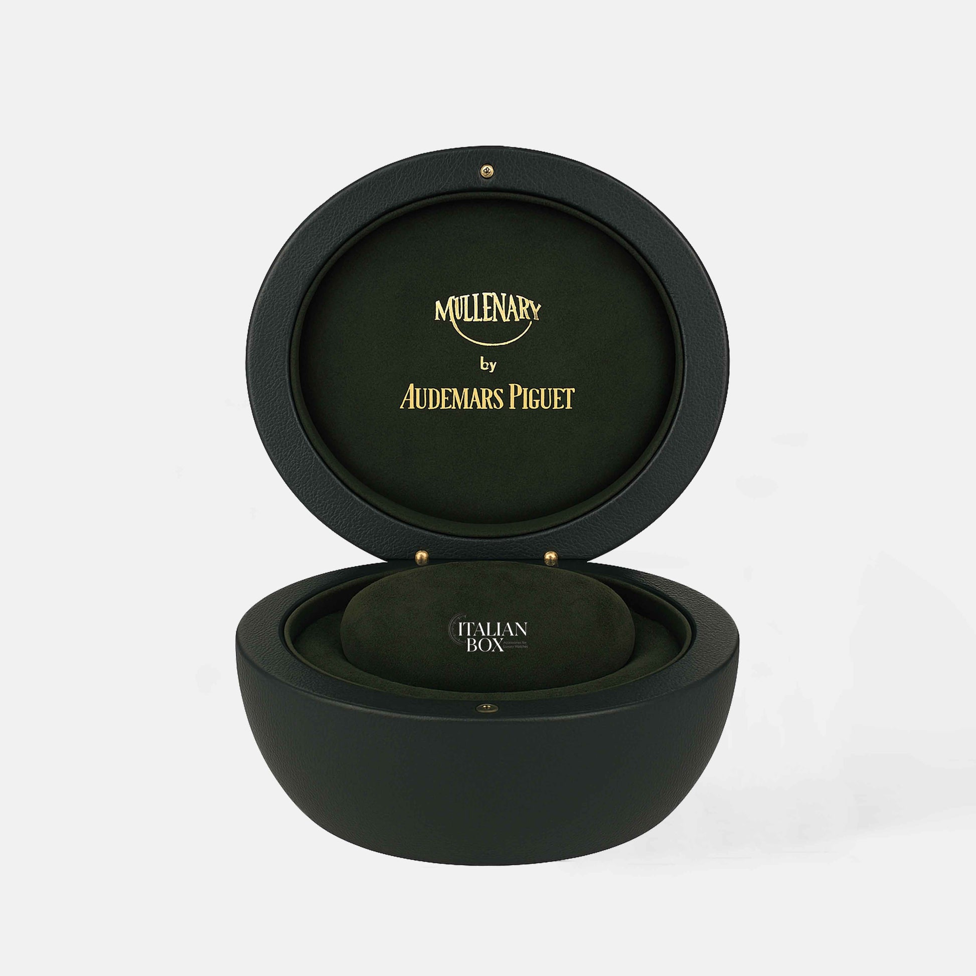 This round presentation box was designed by Audemars Piguet exclusively for their Millenary collection, echoing the contemporary elegance of the watch’s oval case.