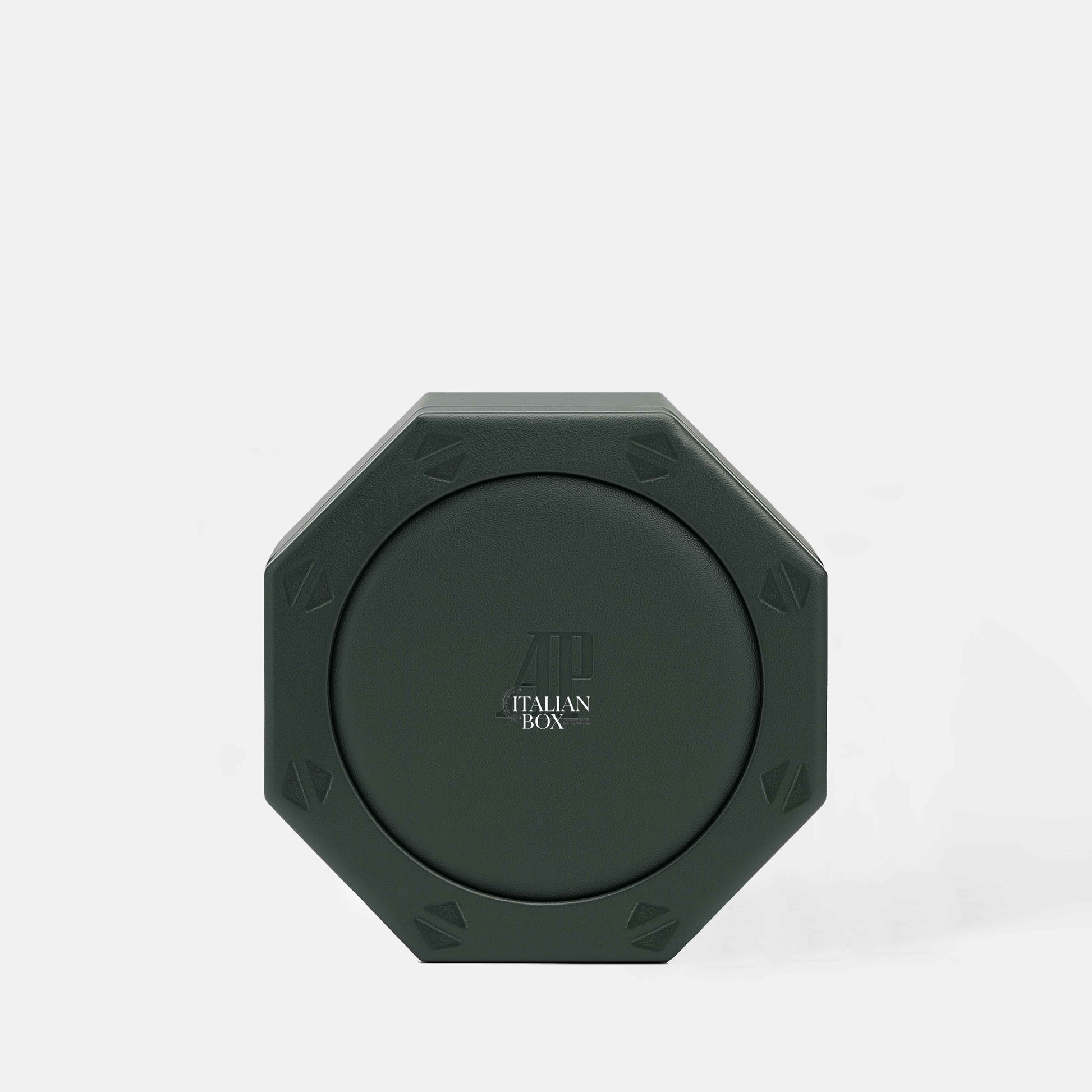 This vintage Audemars Piguet Royal Oak watch box is crafted from green leather, reflecting the brand's signature elegance and sophistication.