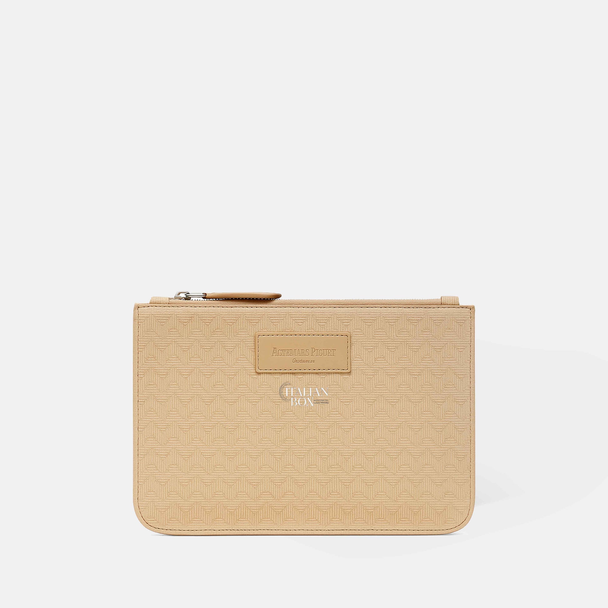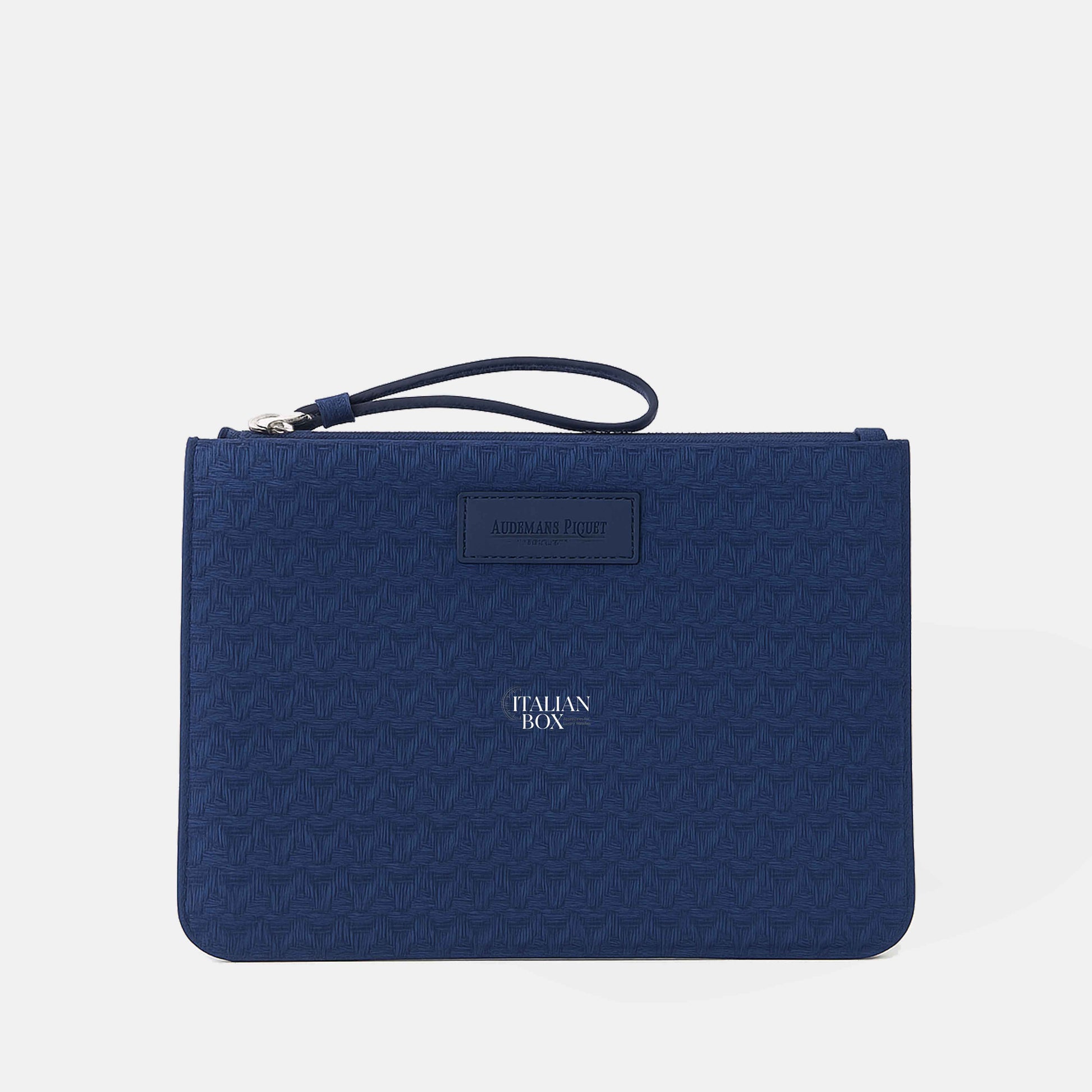 Set of three Audemars Piguet pouches crafted in finely woven leather, each featuring a textured pattern and AP logo patch.