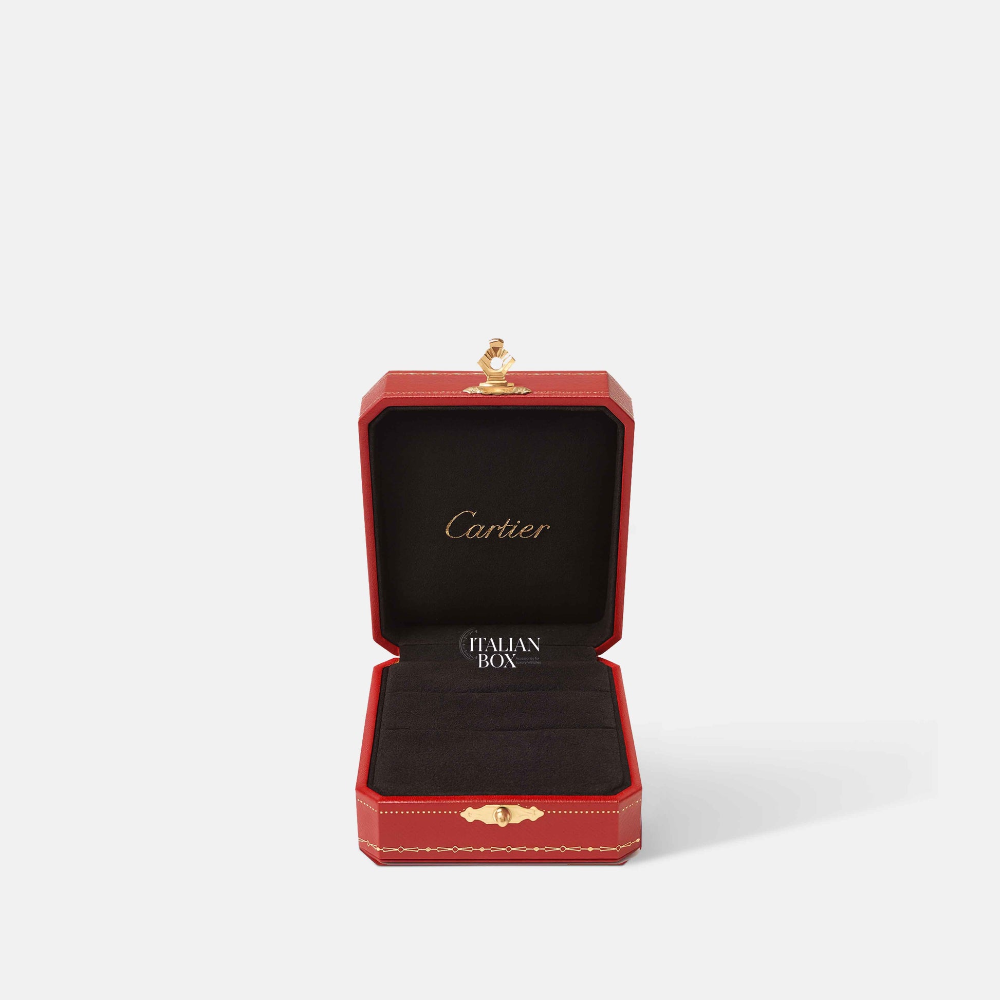 Cartier ring box, ideal also for wedding bands, featuring a soft black interior and the signature Cartier red exterior with gold detailing.