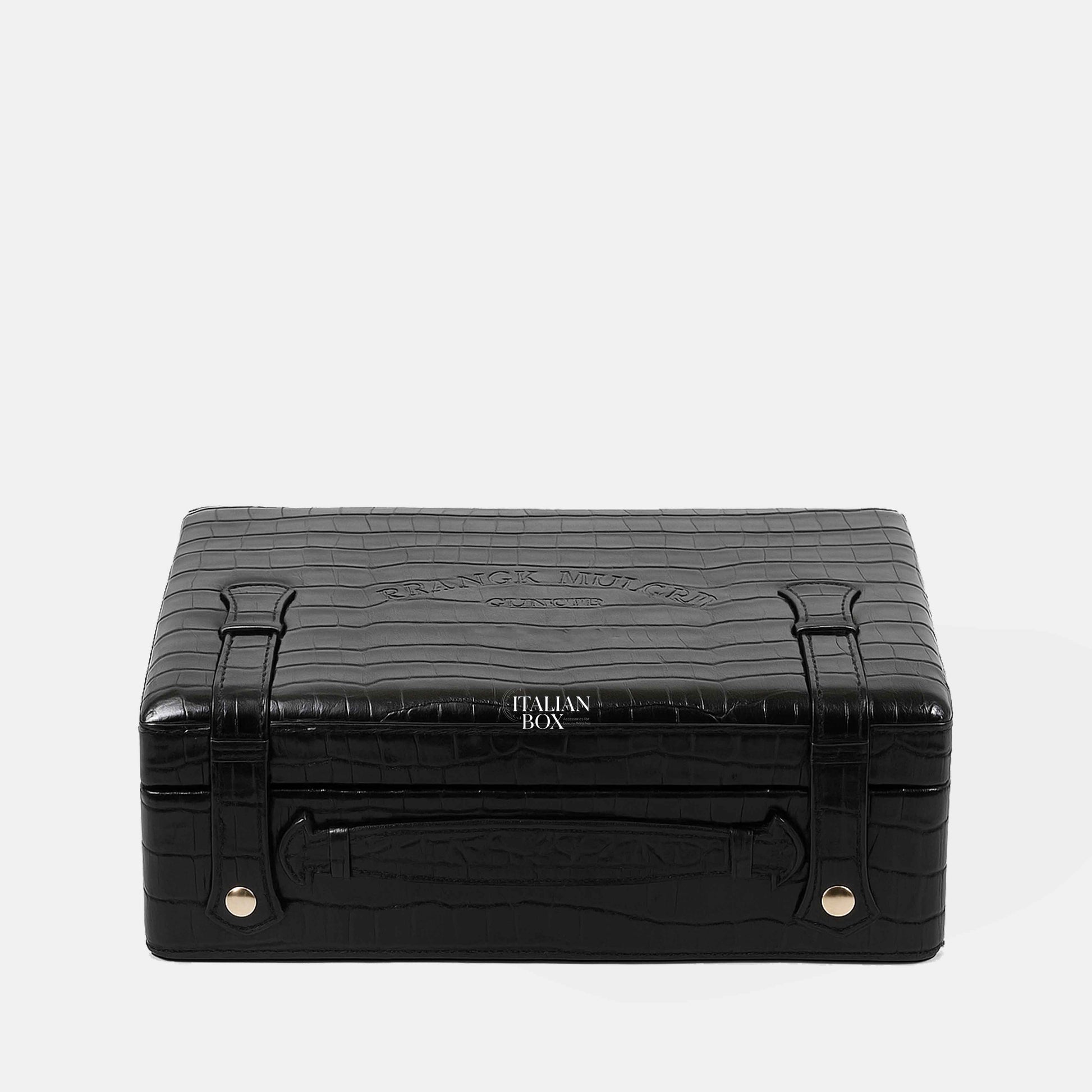 This luxurious Franck Muller watch box is crafted from exquisite black alligator leather, reflecting the brand's signature elegance and sophistication.