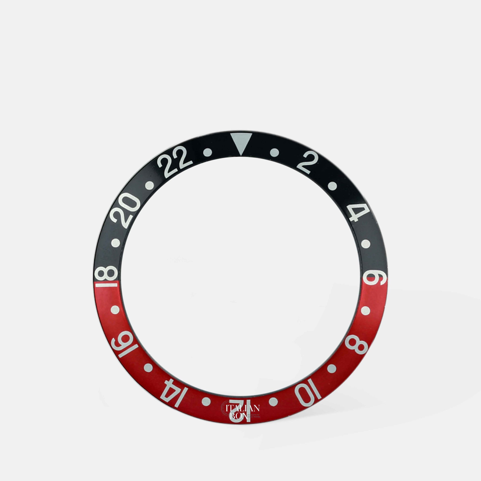 Featuring the distinctive bi-color 24-hour scale, this bezel was used on classic GMT models from the late 1980s through the 2000s and is one of the most recognizable configurations of the GMT-Master line.
